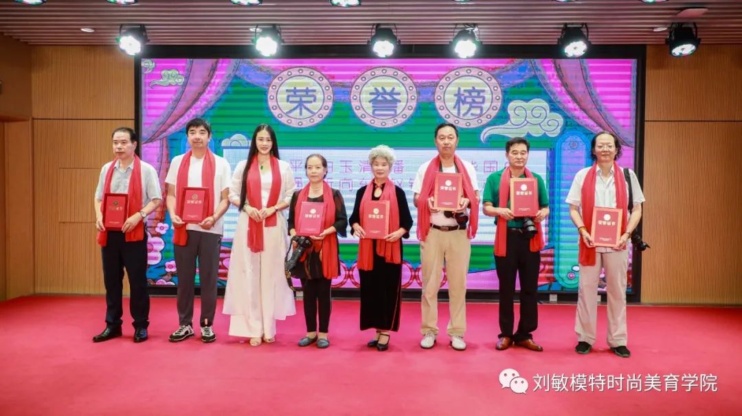 威海市旗袍文化促进会青少年模特专业委员会会长刘敏(左三)为最佳奉献奖颁奖