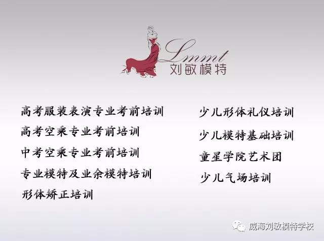 威海刘敏模特空乘艺术学校成立于2010年11月,分别在威海、荣成、文登设立校区。学校先后被授予中国设计师协会职业时装模特委员会委员单位、