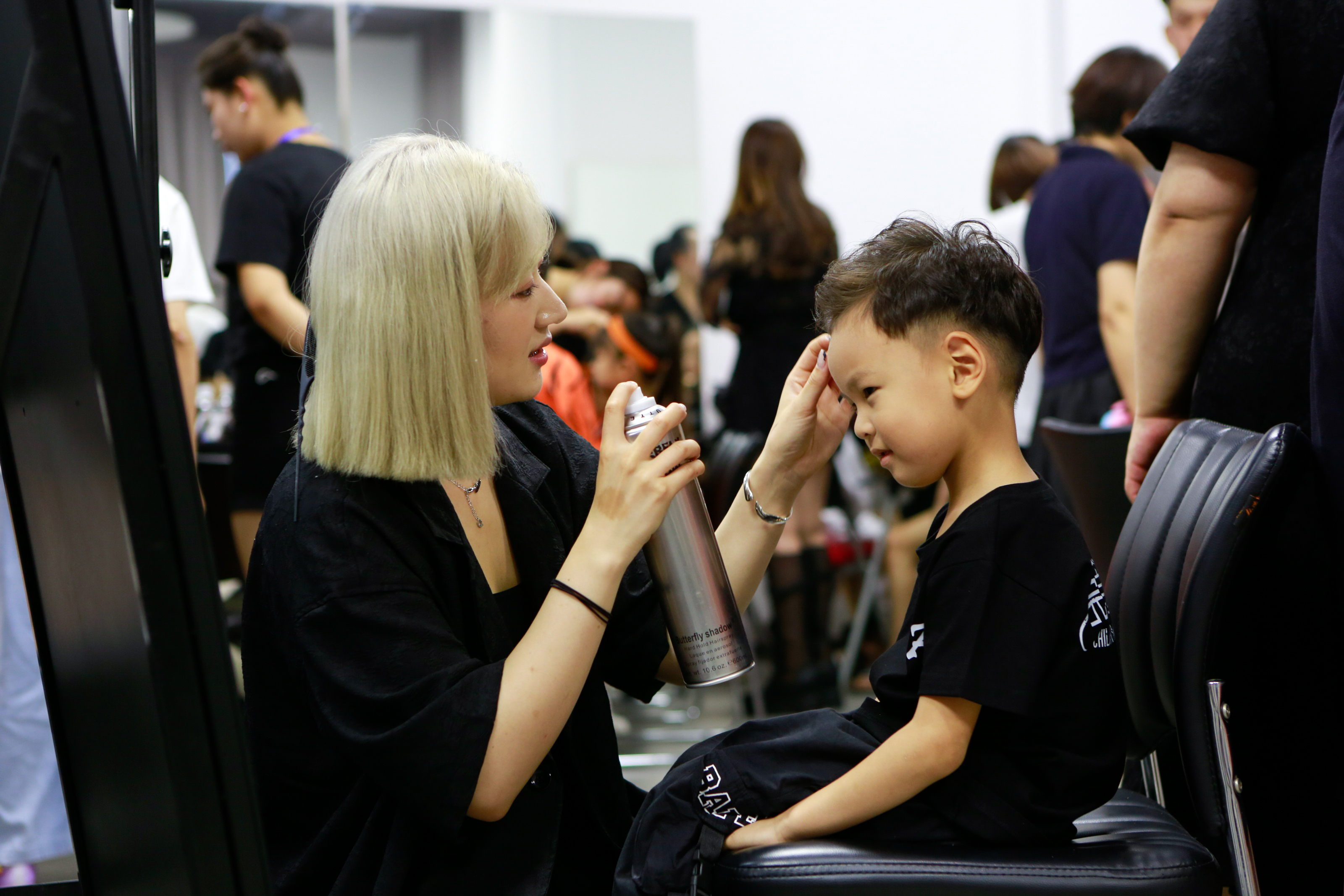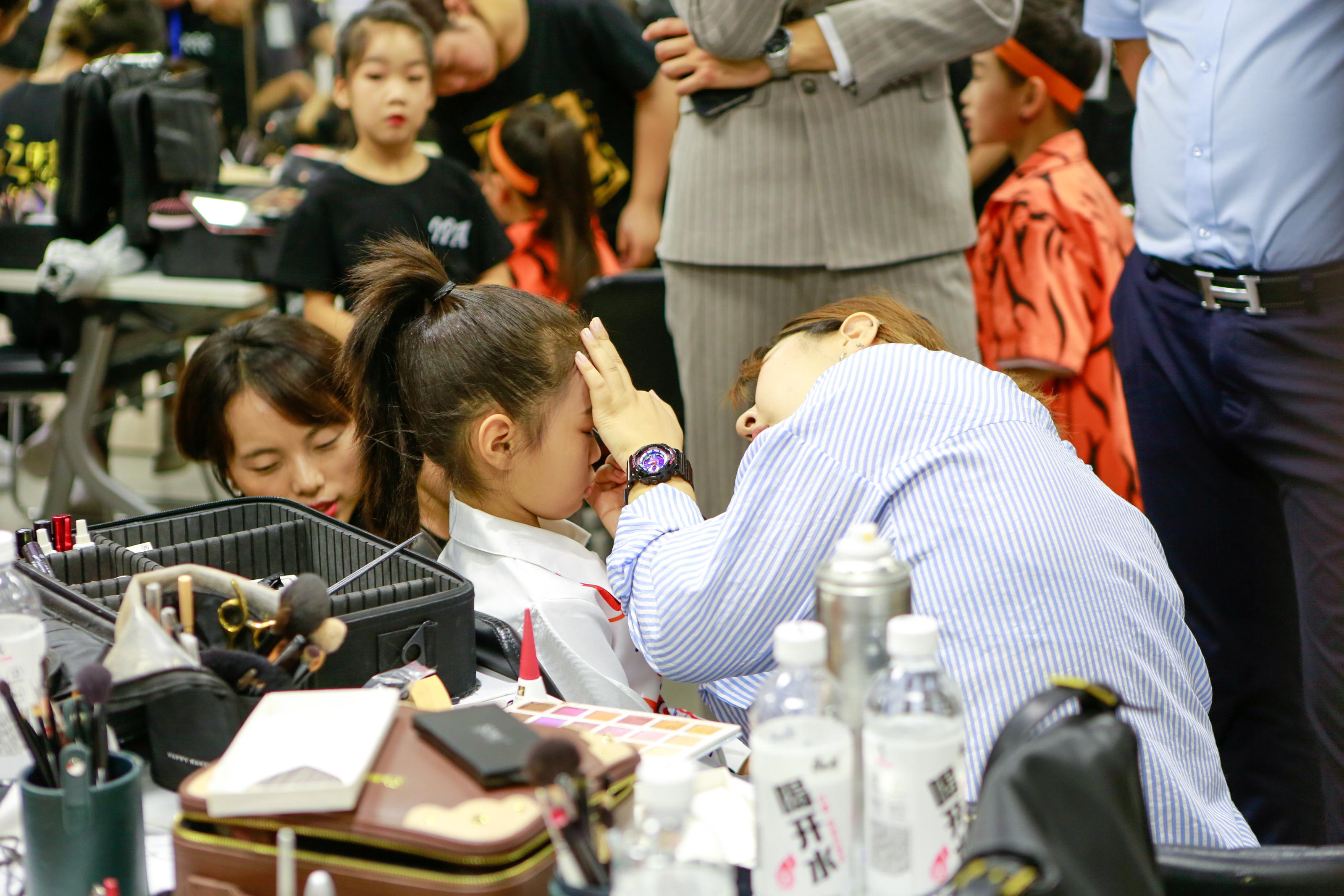化妆师们紧锣密鼓的给每位选手化上精致的妆容,为他们加油助力