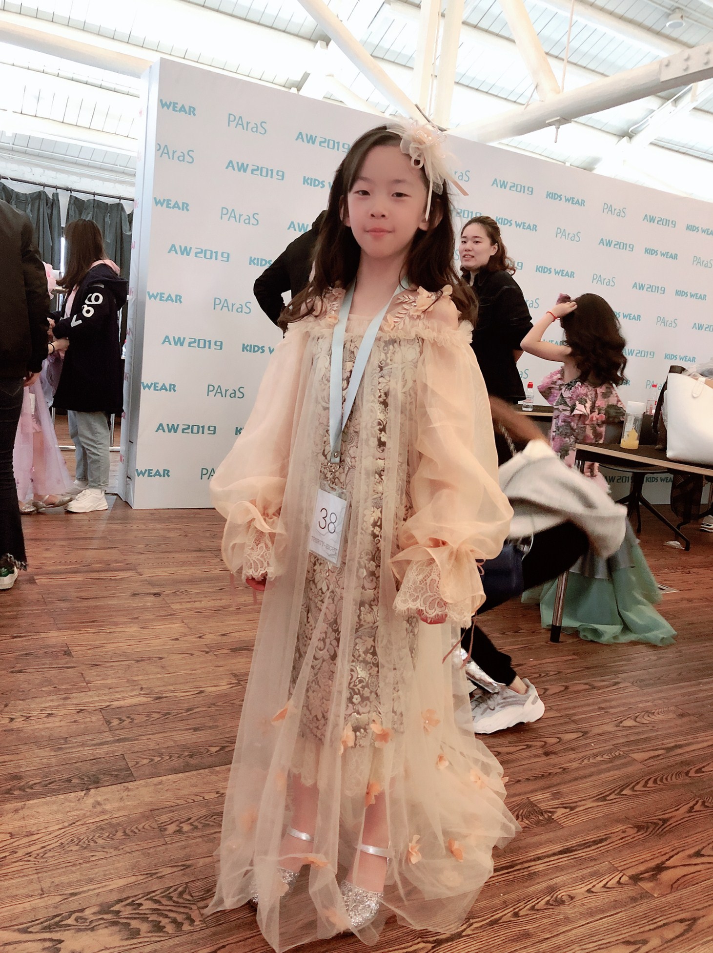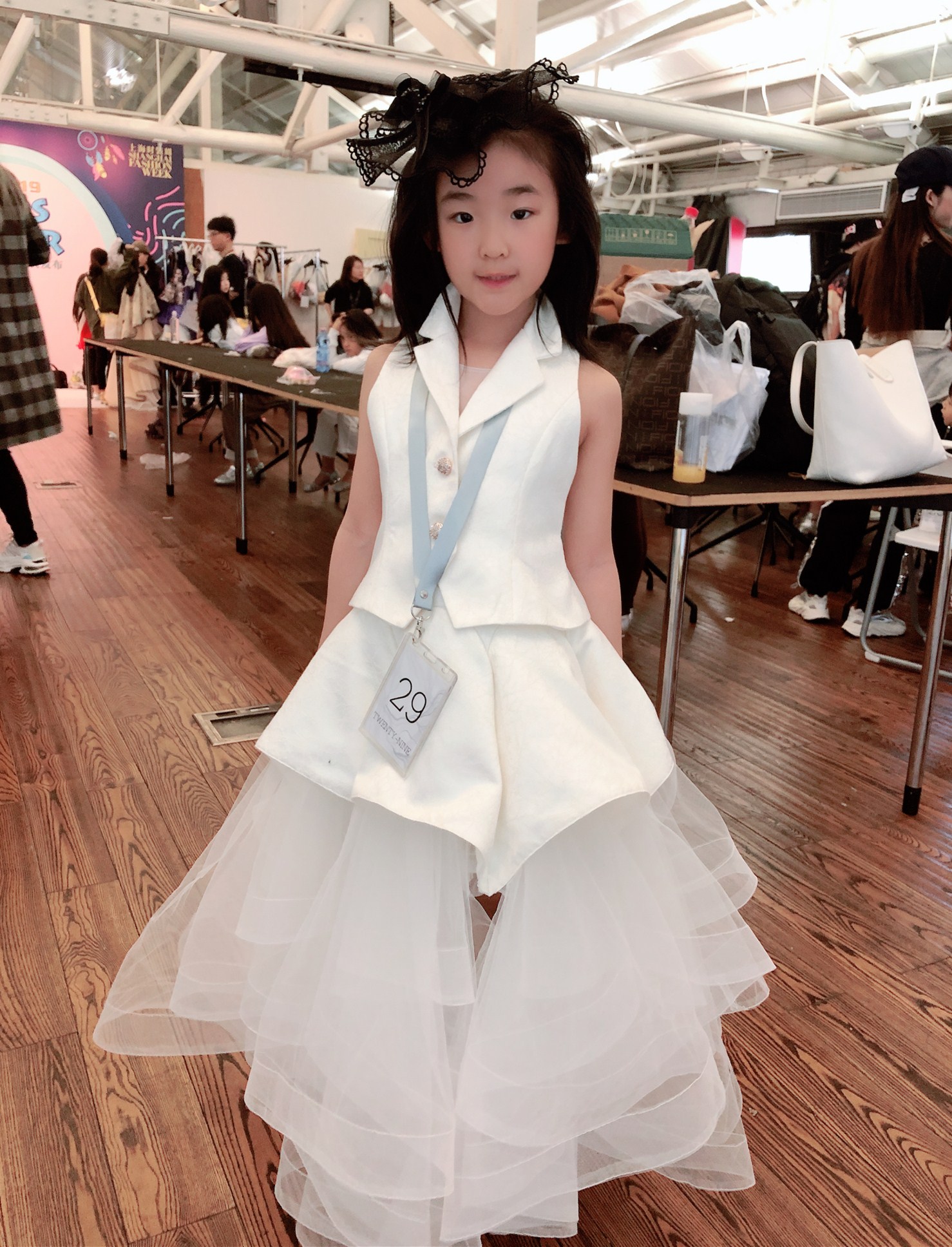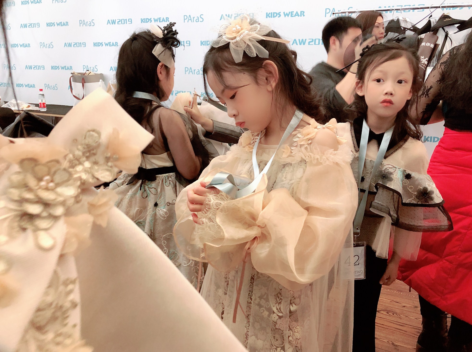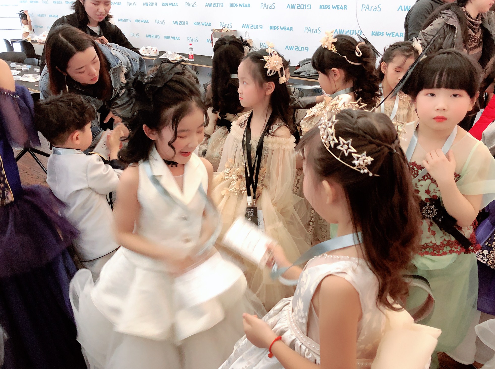 媛媛老师以及两位童模4月4日下午抵达秀场后就开始了试装、彩排等一系列准备工作,一直到晚上11点左右,两个宝贝虽然辛苦但是依然热情高涨的积极配合着现场工作。