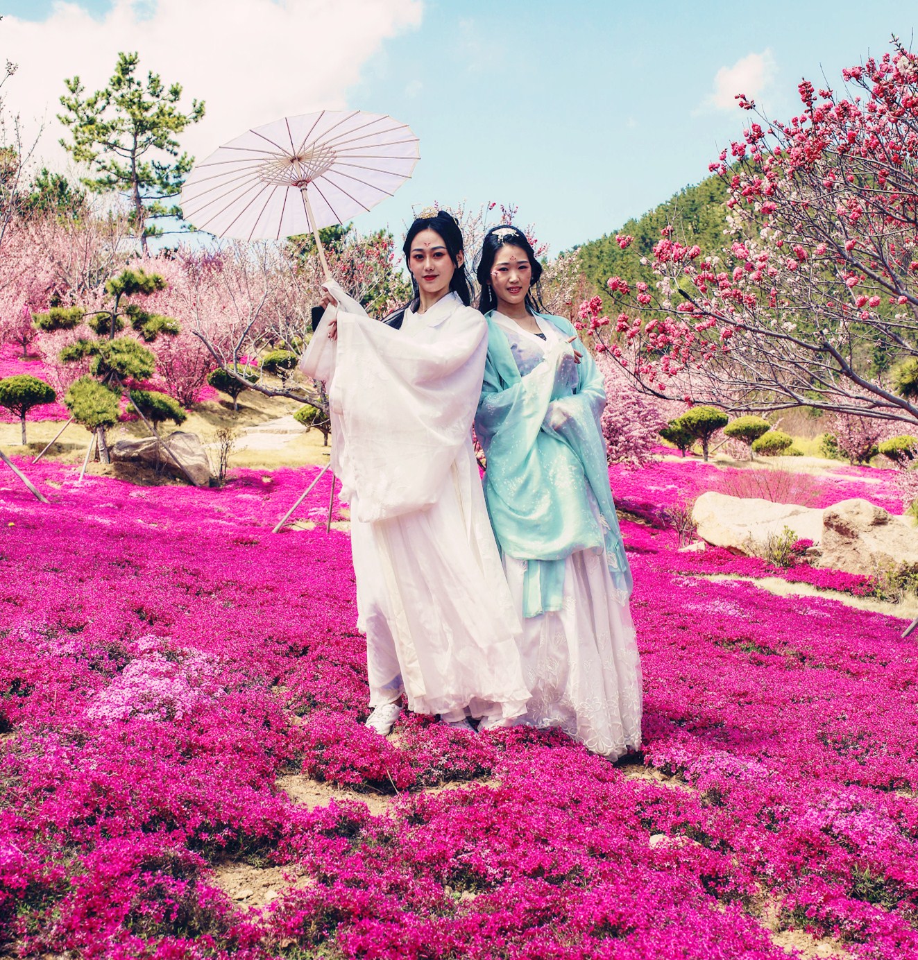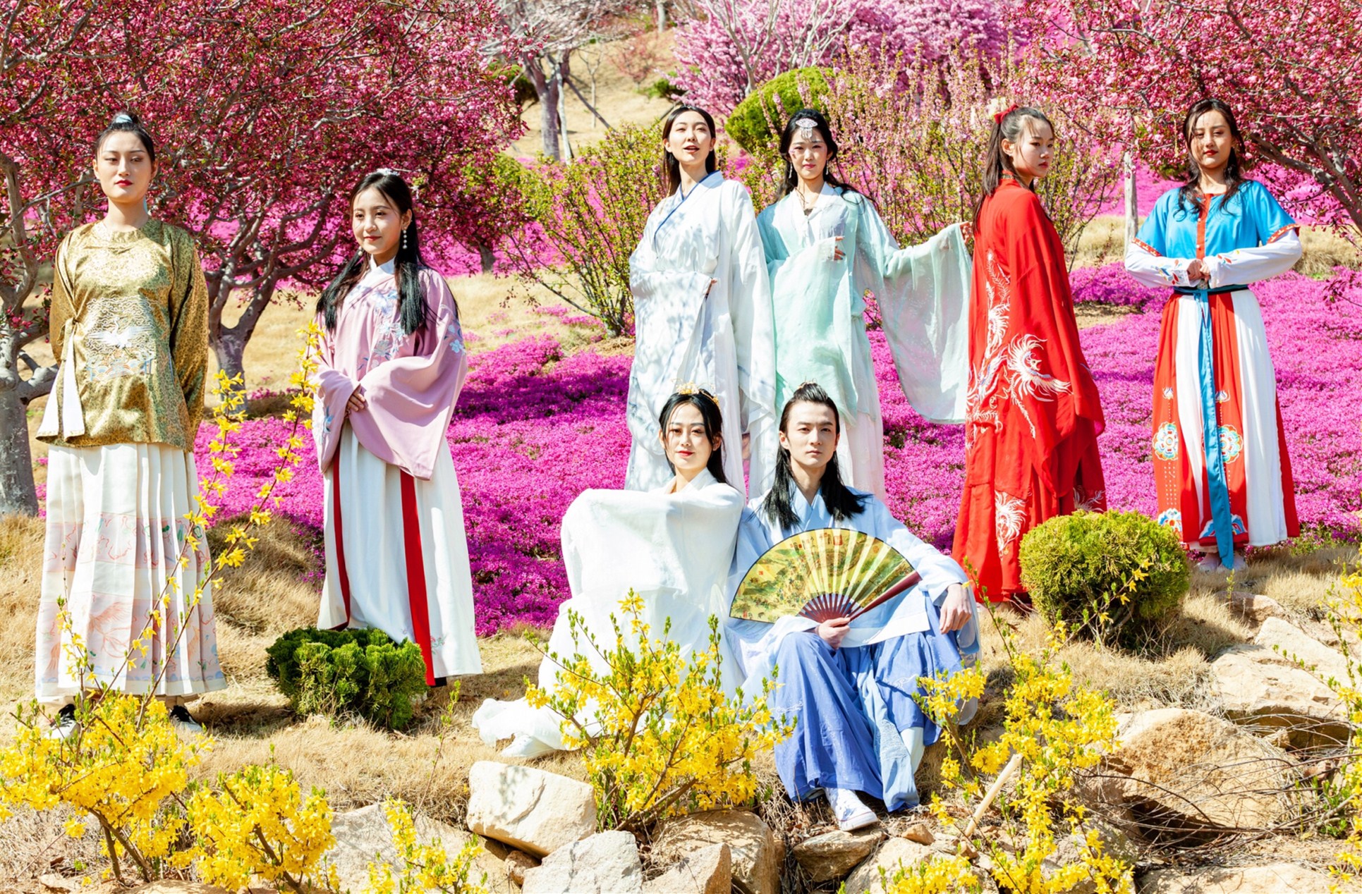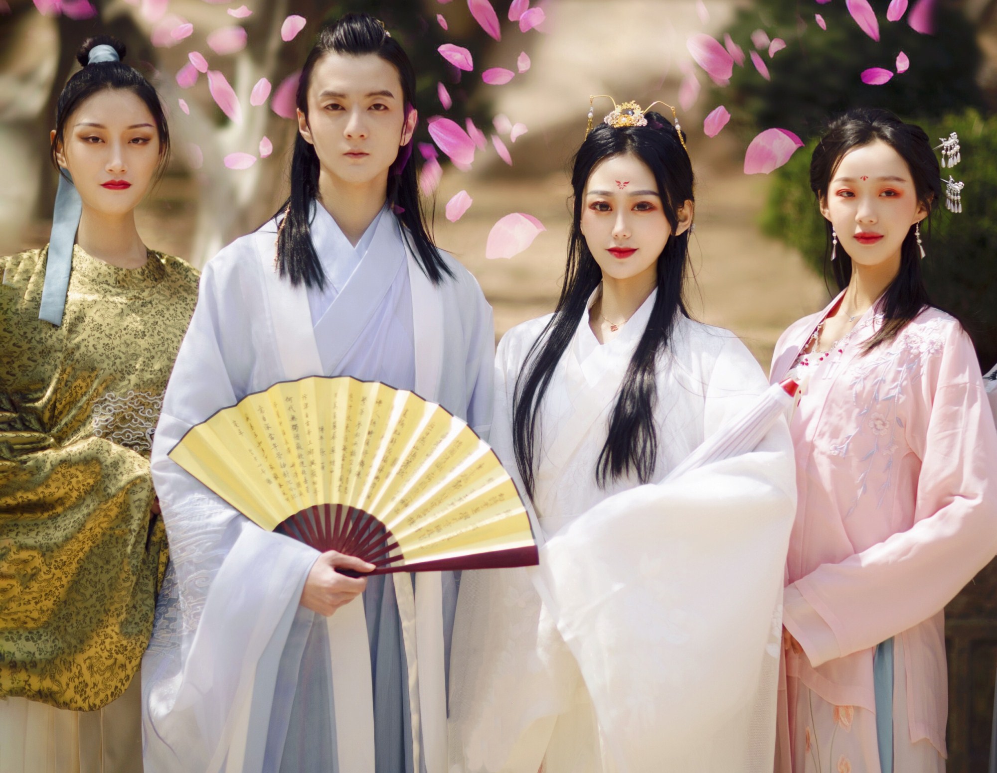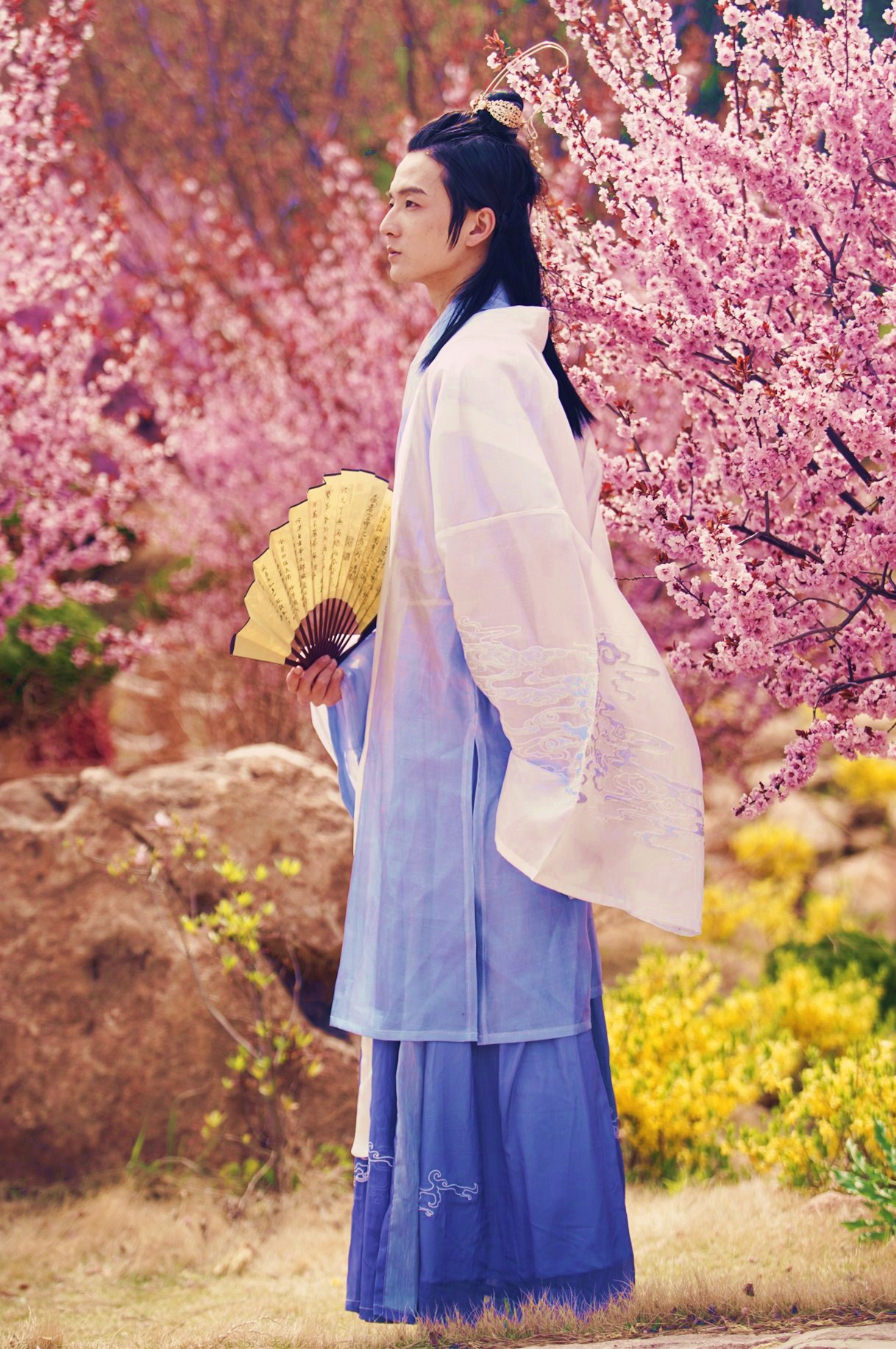 俊男靓女的组合加上汉服与樱花的搭配,恍惚间,令人似有穿越千年的错觉。