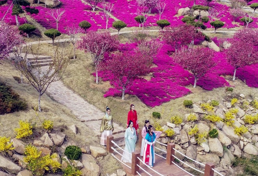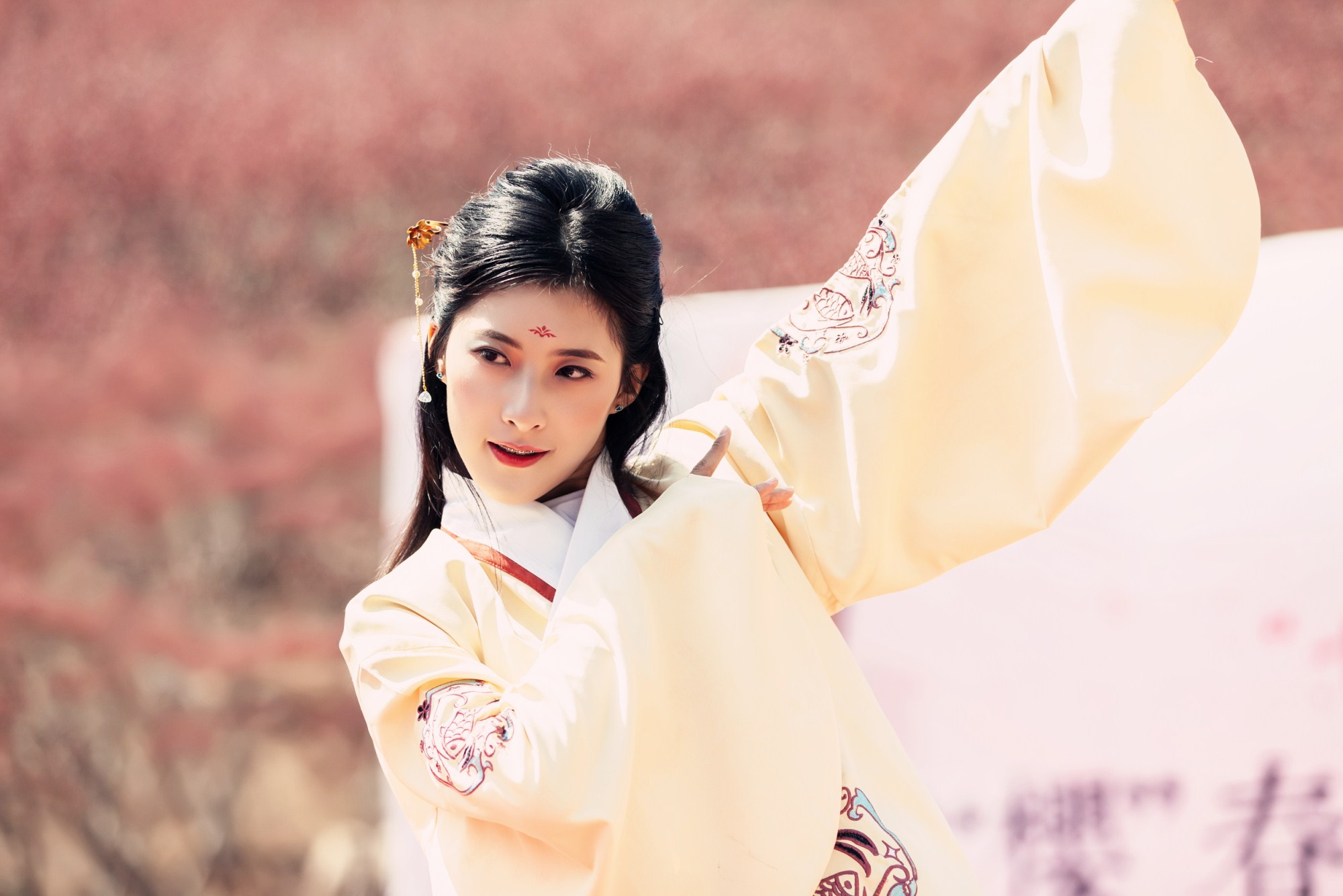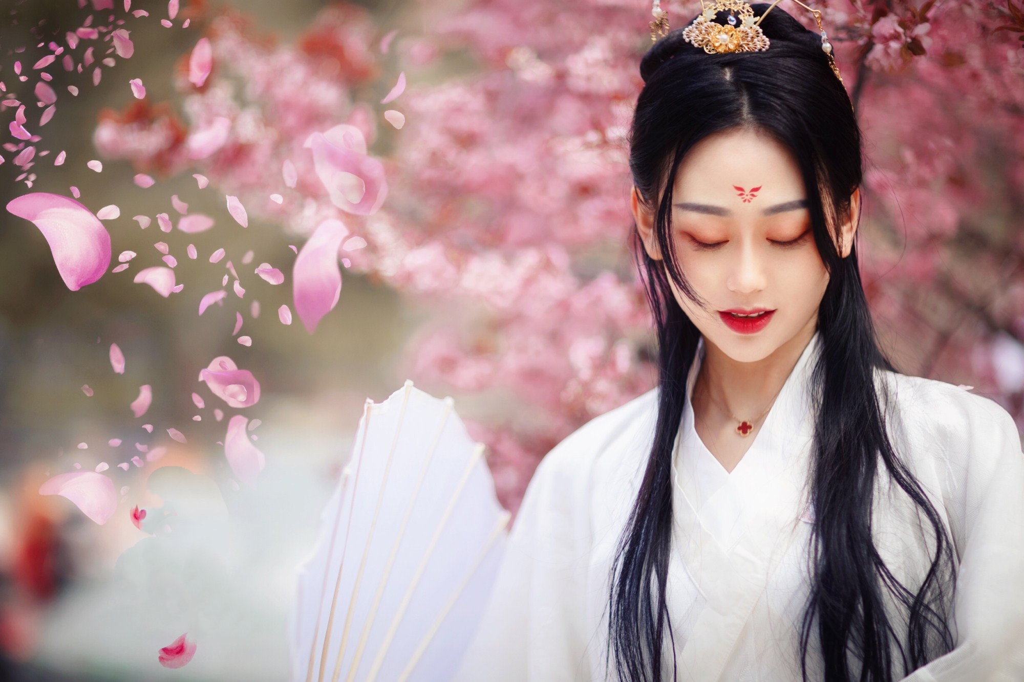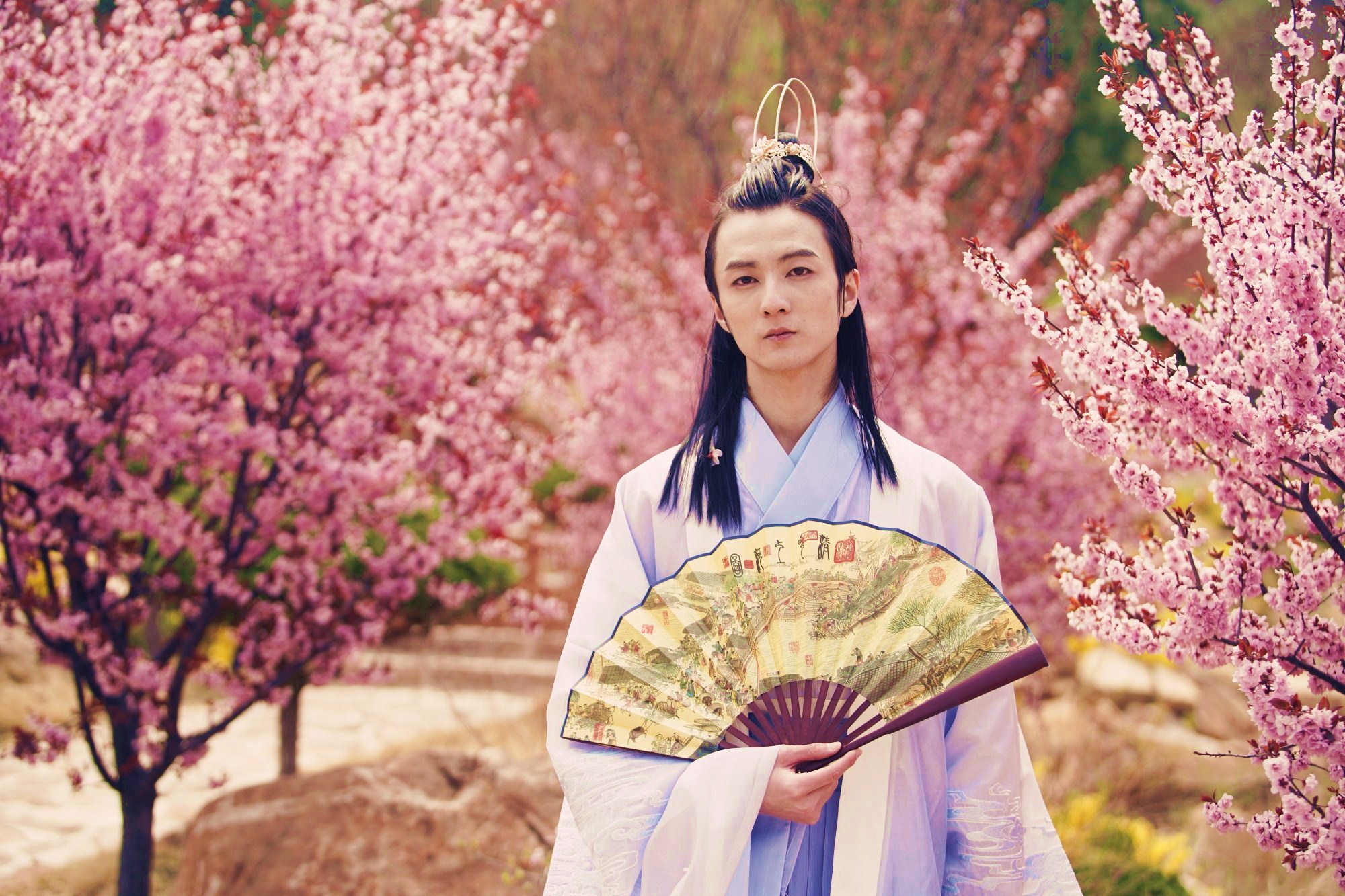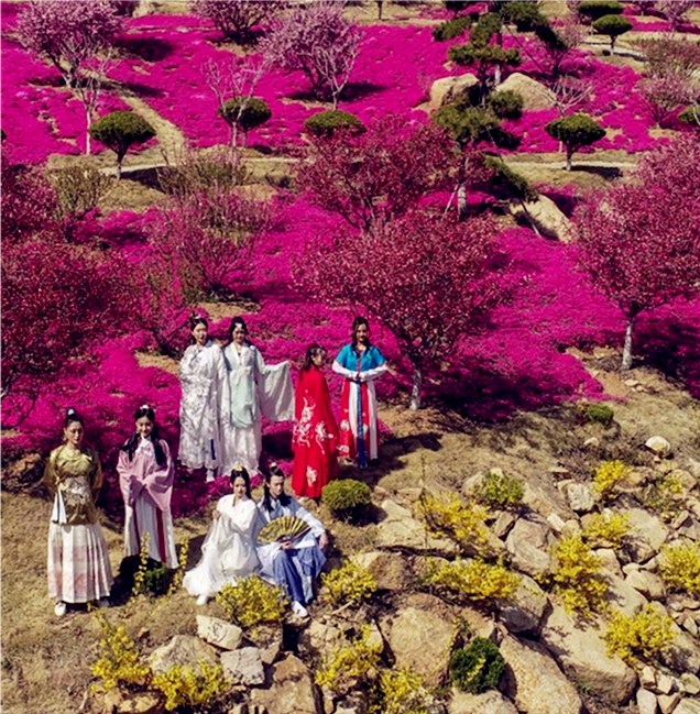 俊男靓女的组合加上汉服与樱花的搭配,恍惚间,令人似有穿越千年的错觉。