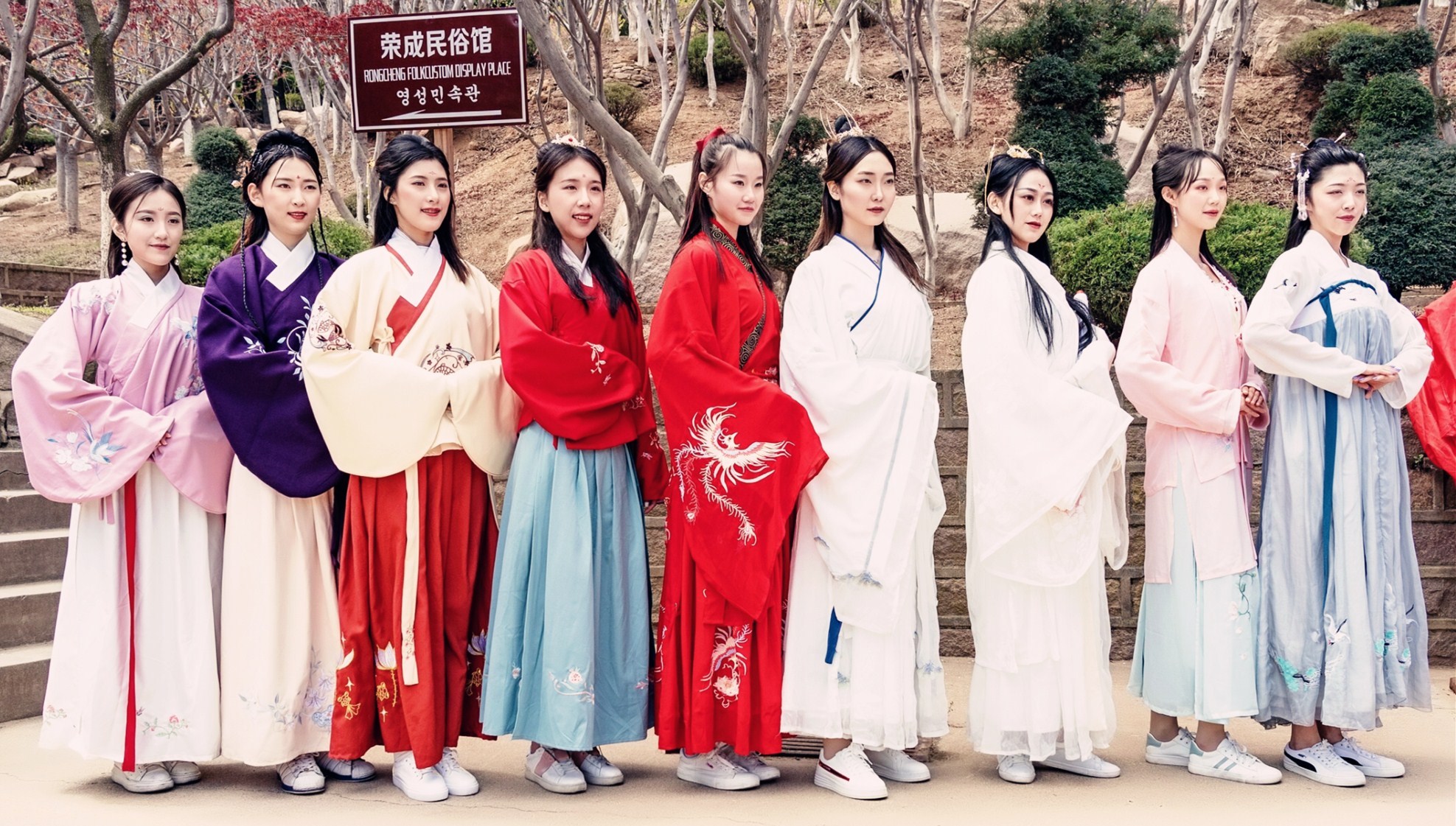 我校15位模特身着汉唐制、魏晋制、明制汉服分别进行了