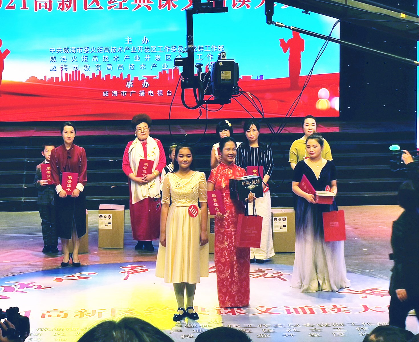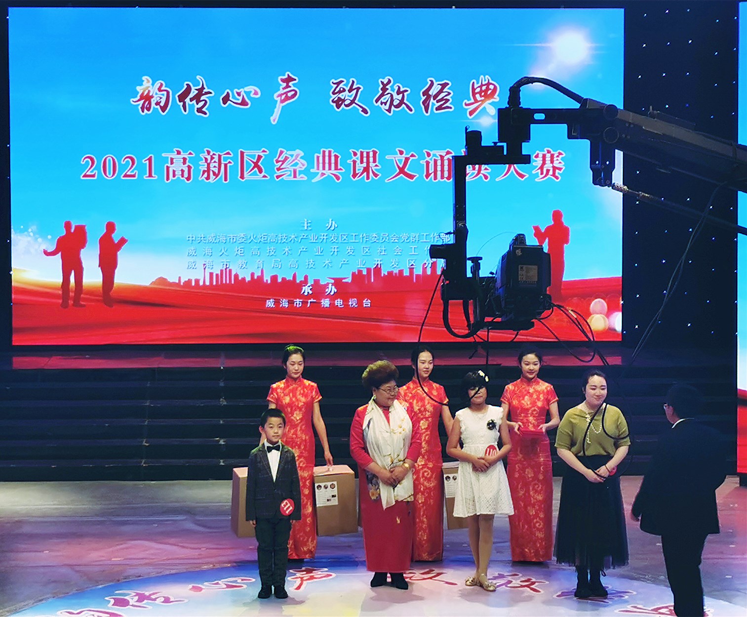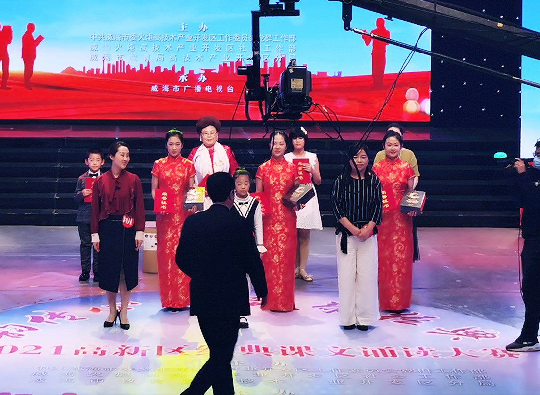 12月22日,由威海高新区工委党群工作部,威海高新区社会工作部,威海市教育局高新区分局主办,威海市广播电视台大型活动中心承办的"韵传心声 致敬经典"2021高新区经典课文诵读大赛正式开始。