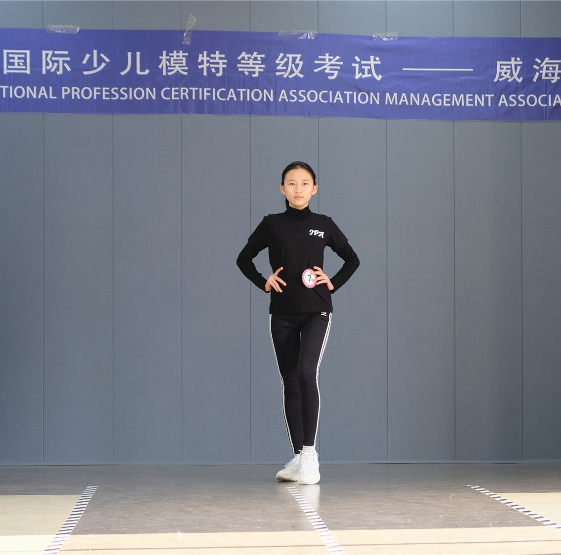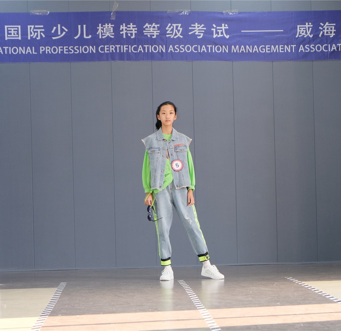 小童模以自信满满的精神面貌站上了考试的T台