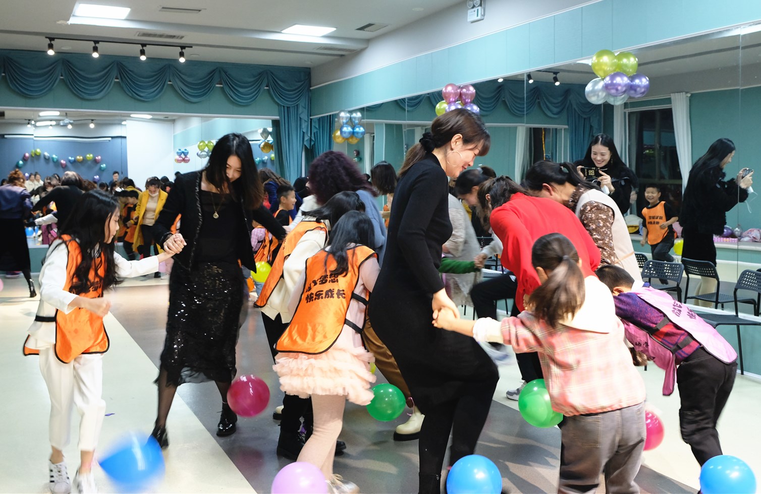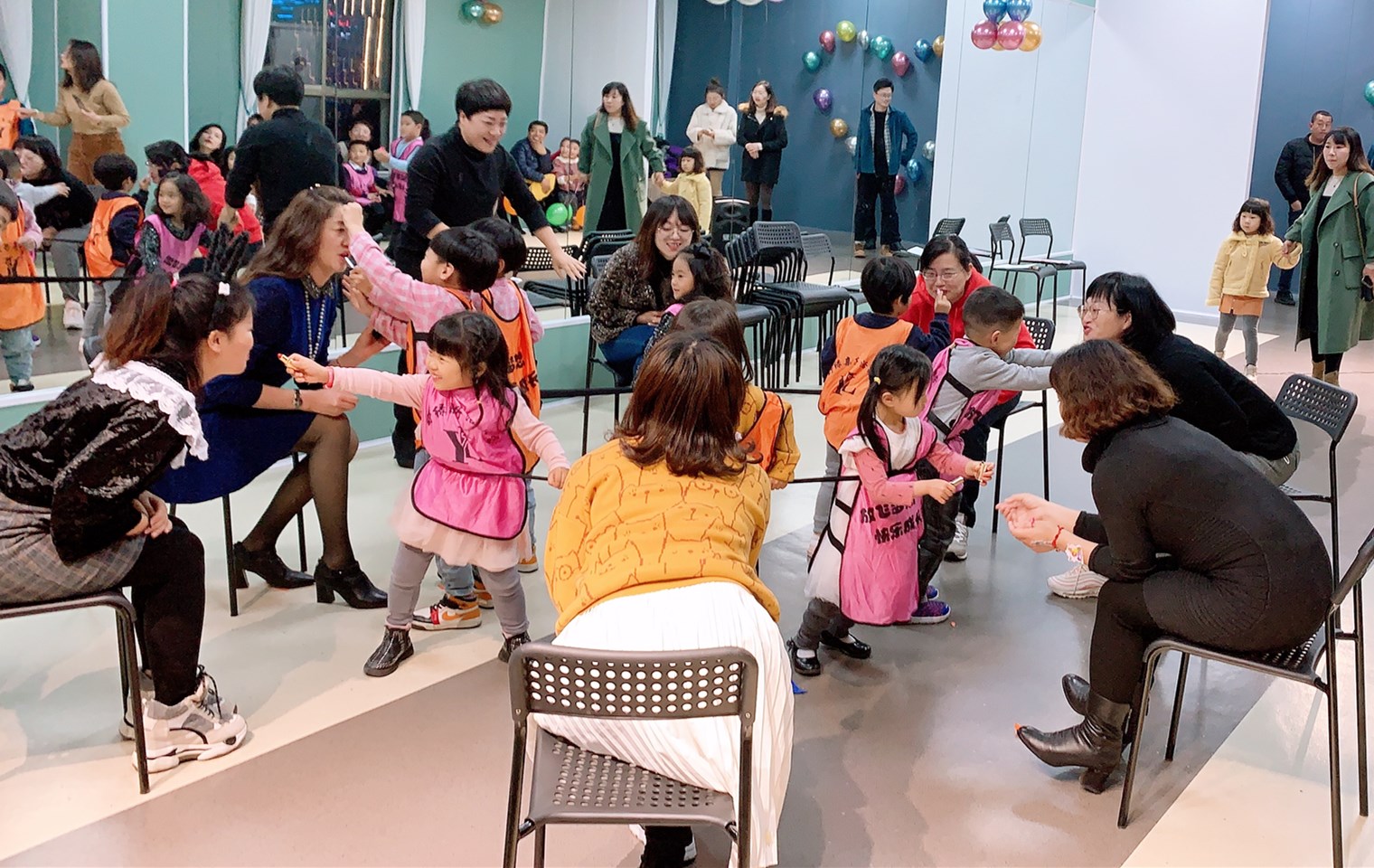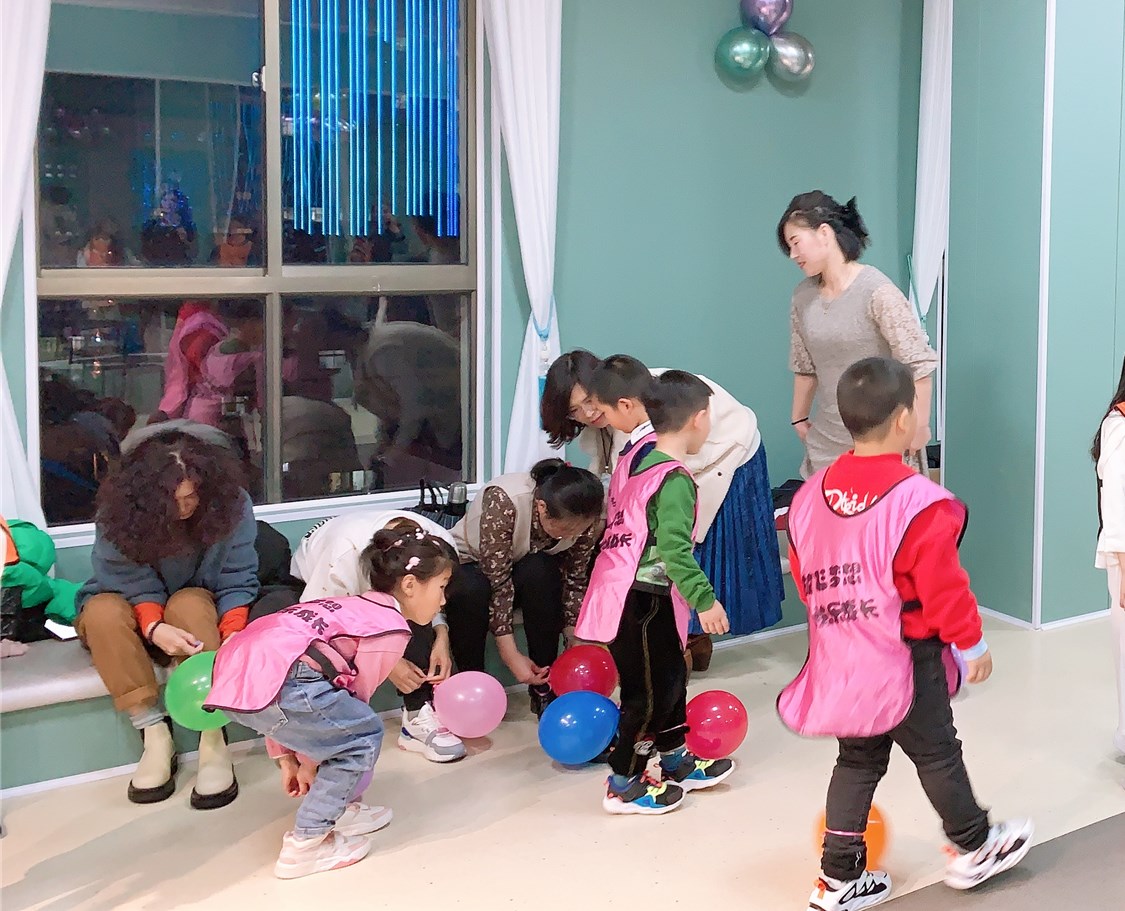 首先‘踩气球’游戏成功点燃了现场的气氛,拉近了小朋友们之间的距离
