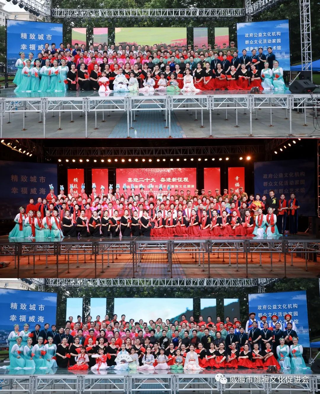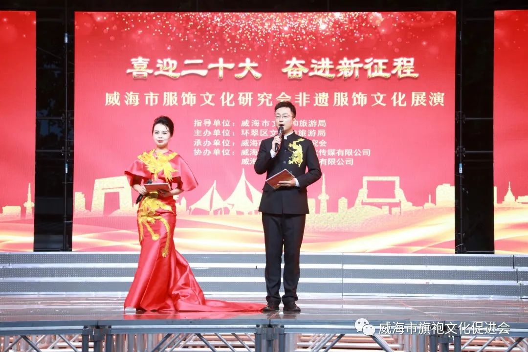 为了迎接党的二十大的胜利召开,营造喜庆祥和浓厚氛围,7月27日,“喜迎二十大 奋进新征程”威海市服饰文化研究会专场文艺汇演在市政府广场精彩上演。本场演出以传承发扬优秀传统文化为主线,弘扬时代主旋律,歌颂美好生活,礼赞祖国,为观众献上了一场视听盛宴。本场活动在威海市文化和旅游局的指导下,由环翠区文化和旅游局主办,威海市服饰文化研究会(原威海市旗袍文化促进会)承办,威海市倚海听风文化传播有限公司、威海瀚文文化交流有限公司、威海市艺术摄影学会、经开区摄影家协会、威海万代房产营销策划有限公司、 中国海洋非遗文创基地(威海民俗文化邨)、刘敏模特时尚美育学院、威海中粮名庄荟、威海皇后郁金香软装等协办。