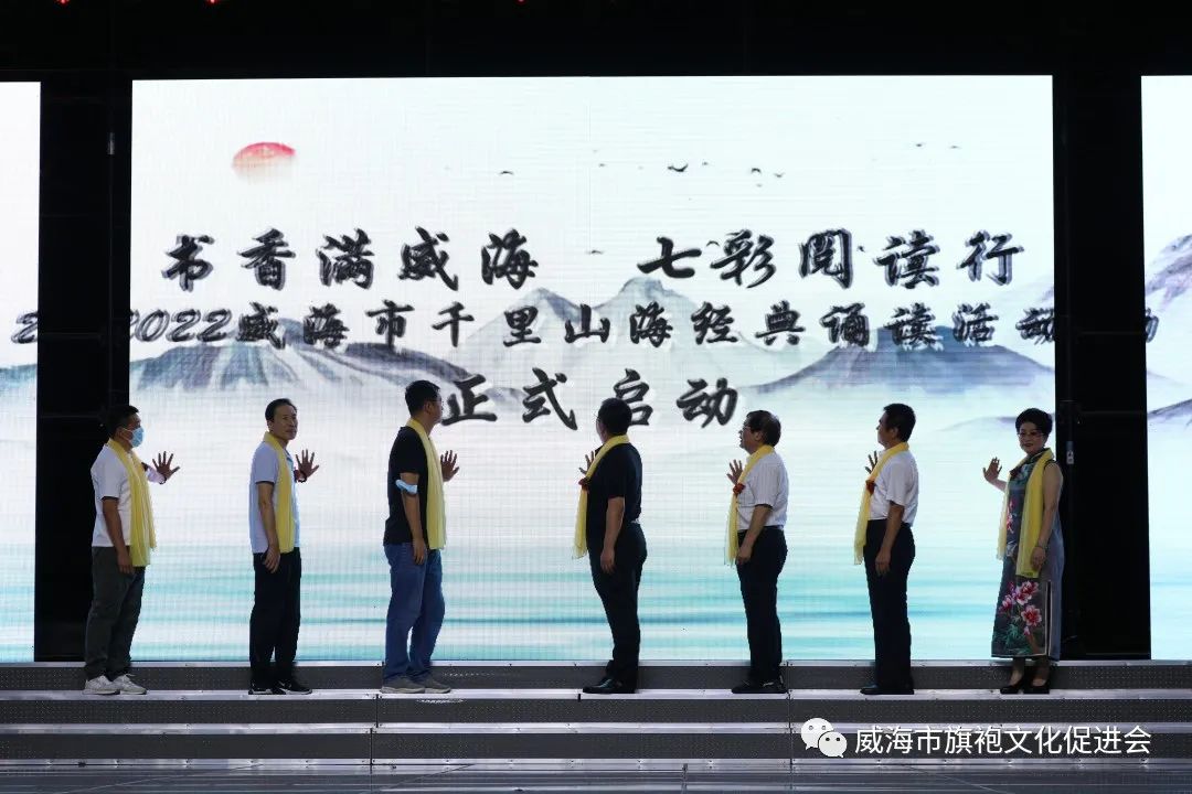 威海市文化和旅游局四级调研员张建阳,山东大学(威海)文化传播学院院长、教授、博士生导师张红军,全民阅读推广服务项目总督导、山东大学法学院(威海)教授刘洋,威海市委原副秘书长、研究室主任、市精品旅游促进会副会长岳连宏,威海市群众艺术馆馆长、威海市非物质文化遗产保护中心主任荆国胜,威海市文化志愿者协会会长郑宁,威海市环翠区旅游事业发展中心主任于澜,圆点·山东融媒体新闻中心主任王刚,中国美术家协会会员、威海美术家协会副主席、威海经济技术开发区美术家协会主席、刘坤美术馆馆长刘坤,威海市服饰文化研究会会长梦浠源出席活动并登台按下启动按钮共同启动了“书香满威海,七彩阅读行”经典诵读活动。